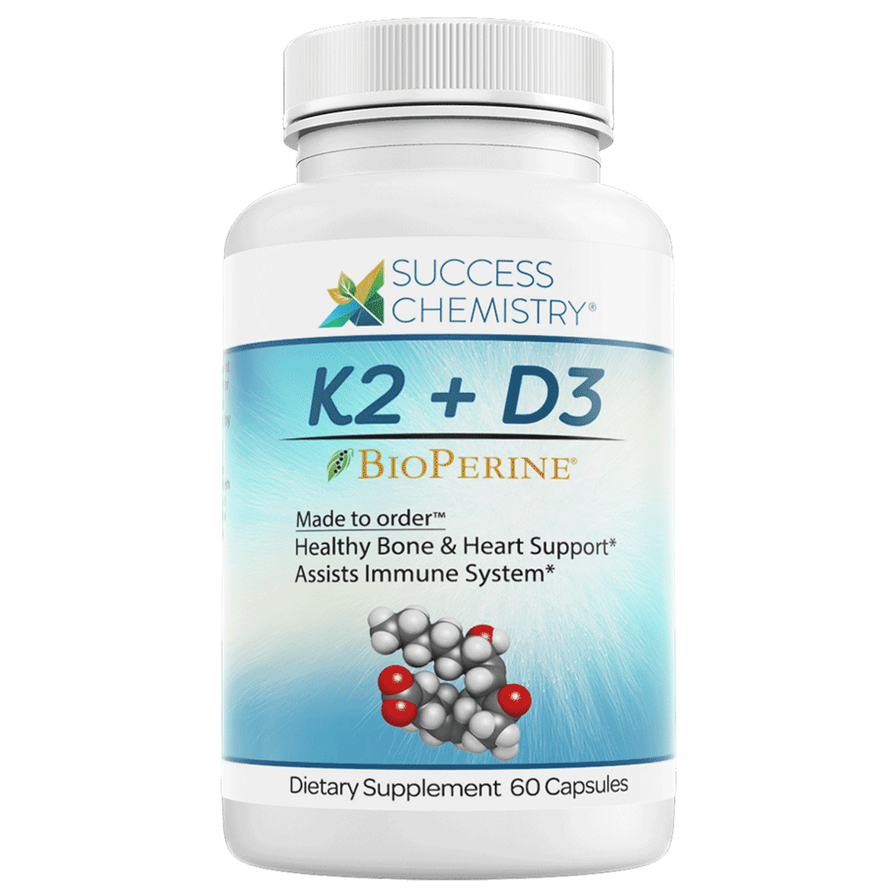 Elevate your health with Success Chemistry’s Vitamin K2 + D3 Supplement, featuring BioPerine for enhanced nutrient absorption. Each capsule combines the powerful benefits of Vitamin K2 and Vitamin D3, supporting optimal calcium metabolism and promoting heart health, stronger bones, and a robust immune system.