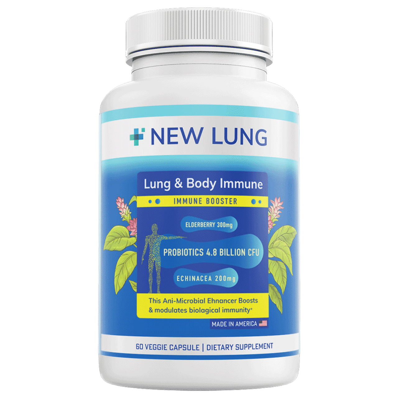 Support Your Respiratory and Immune Health Naturally: Invest in your health with New Lung® Lung and Body Immune Support with Echinacea and Probiotics. Our advanced formula provides the essential nutrients and herbal support your body needs for optimal lung function, immune response, and overall well-being. Experience the benefits of comprehensive health support with our expertly crafted supplement.