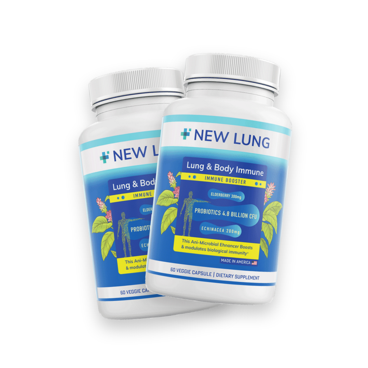 New Lung Lung and Body Immune Support 2-Pack - Elderberry, Echinacea, Probiotics, Vitamin C - Respiratory and Immune Wellness - 120 Capsules Total